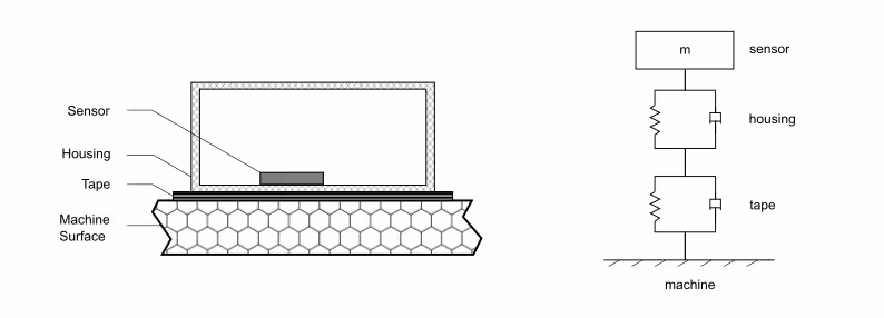 To answer the question, it’s important to understand how our sensor behaves dynamically. Inside the sensor, the MEMS accelerometer is mounted directly to the housing, minimizing the distance between the measurement point and the structure it's monitoring.