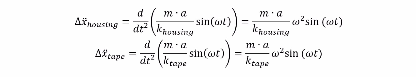 The deformation of the tape scales with applied force which is product of the housing mass and the acceleration of the machine. Because the spring are in series, they both feel the same force. It is also inversely proportional to their stiffness: