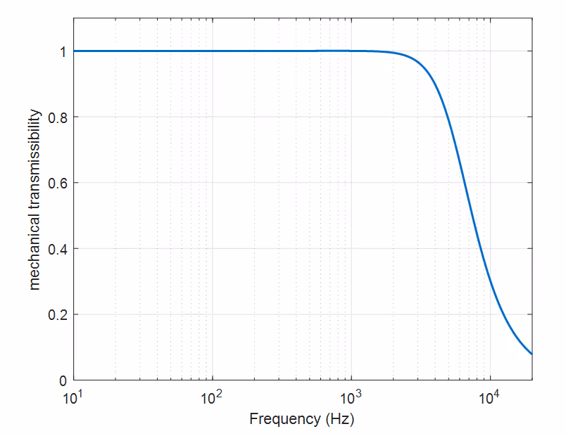 Again, using epoxy glues will push this cut-off frequency drastically as it the housing stiffness is the dominant factor. In that case, it increase to 78kHz well beyond the range of interest.